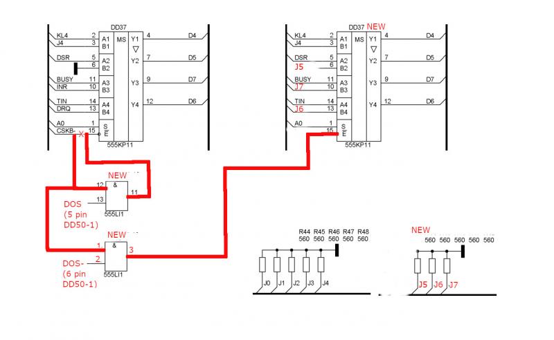 1. Напаять бутербродом вторую микросхему DD37 (КП11), все выводы, кроме 6, 10, 13, 15 соединить.