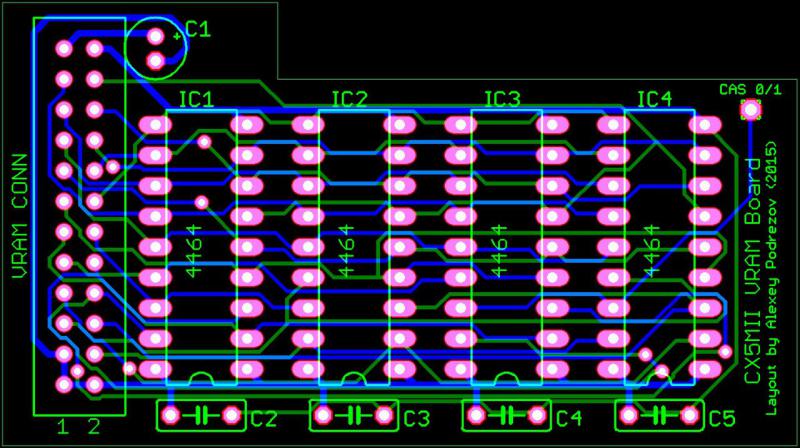 По просьбам некоторых зарубежных пользователей и благодаря советам специалистов я сделал плату расширения видеопамяти на 64-128кб для компьютеров Yamaha CM5MII, YIS503II и Al Alamiah AX-200.