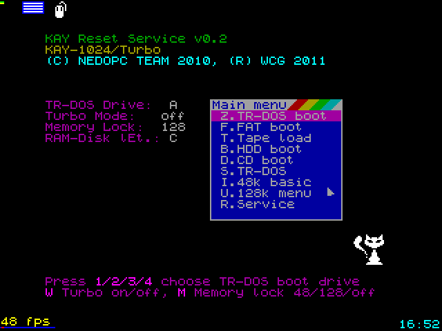 По-малеху переделываю НЕГлюк под кай-1024. получается не очень быстро, ибо 1 - давно не кодил на асме, но еще и не все забыл 2 - слишком много в глюке завязано, причем жестко, на порты Пня, АТМ и Эвы... Уже заработала функция создания рам-диска для стандартной каевской тыр-досины и каевской памяти, но надо лишние пункты повыкидывать, т.к. в кае эл.диск создается начиная со страницы 24 и направлением вверх, а в пне - от последней страницы вниз, т.е. наоборот, поэтому, считаю создание рам-диска размером отличным от 640КБ действием лишним.