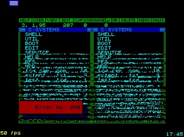 Ошибка 250 - не совпадает контрольная сумма загруженного файла (trd_ram.com) с укзананной в описателе файла. Причины - битый файл. Потом судя по порче экрана может файл грузится в экранную область памяти? Т.е. неверный адрес загрузки файла?