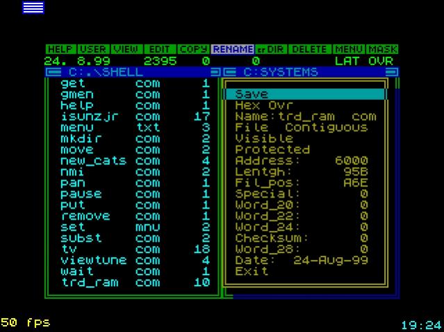 Файл тот, что я давал? Если да, то я указывал адрес его загрузки. Надо прописать его в описатель файла - т.е. при переименовании файла жмём на SS+Space и попадаем в меню изменения параметров описателя файла. Там находим стартовый адрес файла (параметр Address) и меняем его на 24756. Затем сохраняем изменения через опцию Save.