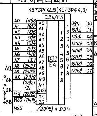 Мне кажется там неправильно обозначены выводы у микросхем К573РФ2. Вывод 12 стал вдруг сигналом 4 т. е. D3