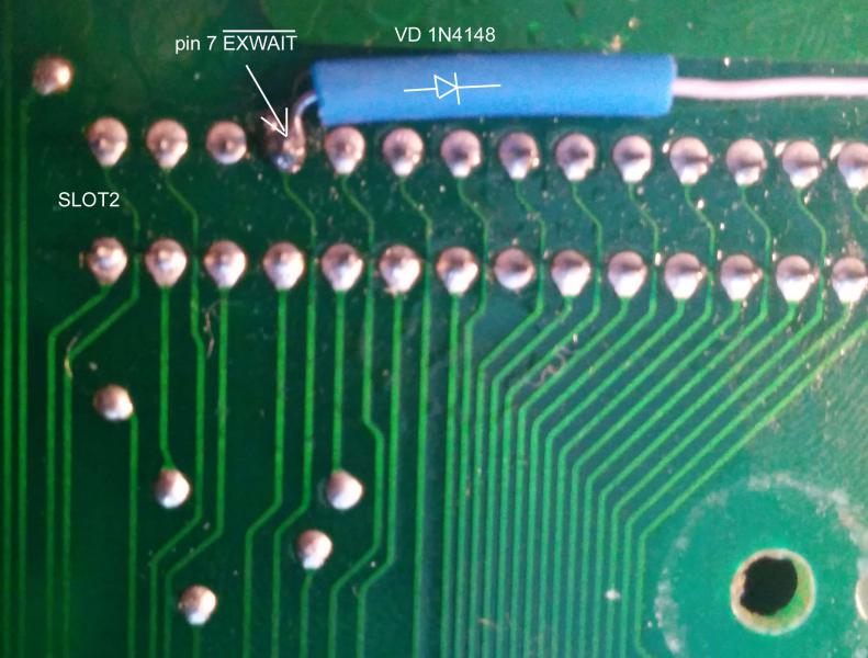 3) Между пином 26 VDP (*WAIT) и пином 7 Слотового разьема (/EXWAIT) впаять диод (1N4148) катодом к VDP;
