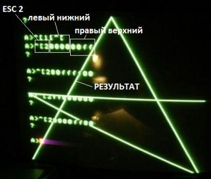 1 - прямоугольники ESC <код> <X1> <Y1> <X2> <Y2> Код, как я думаю, принимает значение от 1 до 0 (1 2 3 4 5 6 7 8 9 0), это нигде у меня не написано.
