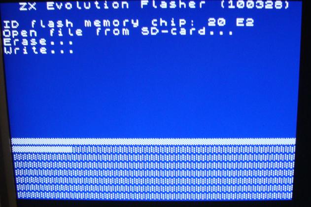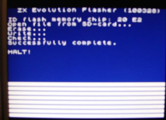 5. Заработает флешер, по экрану пойдут белые полосочки банков ПЗУ.