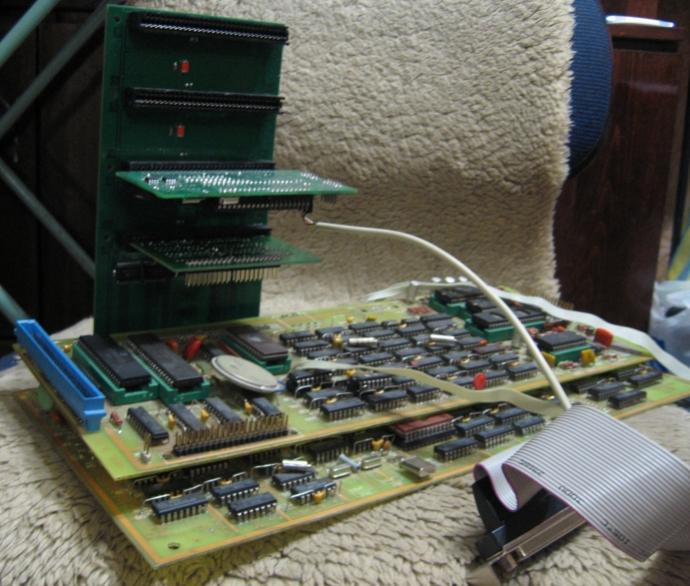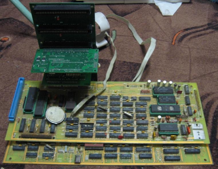 ВНИМАНИЕ! Если использовать расширитель горизонтально (вместо, а не совместно с верхней платой от профи 3.2) следует учесть тот факт, что на верхней интерфейсной плате расположены так же AY, порт принтера, Kempston и контроллер дисковода, а так же схема управления расширенным экраном. Для правильной работы расширителя вместо верхней платы возможно необходимо наличие контроллера дисковода или его "эмулятора". Расширитель не проверялся как отдельное устройство выполняющее функции верхней платы!!! Обязательно уточните стороны «А,В» системного разъема и слота ZX-BUS для любого варианта установки!!![свернуть]