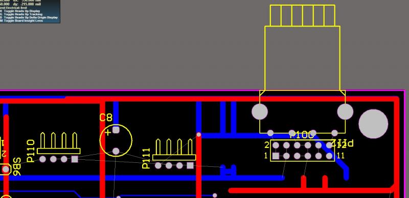 а вот так вот, как на картинке, не? это под угловой молекс "папу" со скосами внизу разъема. вроде как нормальное расположение вместо стандартного разъема питания и разводка получилась. только питание +12В (справа) тоже желательно потолще (я только сейчас заметил, когда текст писал). корпус разъема не указал, т.к. нет у меня на разъемы молекс библиотеки под пикад и набирал из обычных PADов.