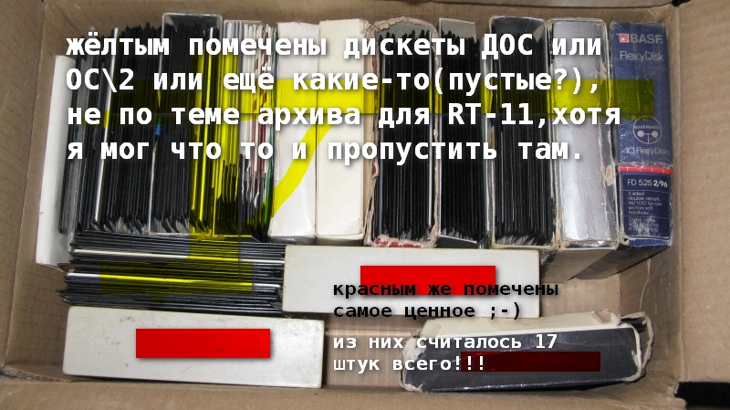 Не знаю как быть с древними дисками MX. Не хочу их бестолку "мурыжить" лишний раз. Там скорее всего архивы по теме АСПкорп. и КУВТ86 (то есть ДВК-2М+БК0010). И сейчас не подключен системник с 5" читалкой, поэтому не ждите новостей прямо вот завтра, лады? ) Коробка у меня. Контакт. инф. ув. Сергея Фоменко у меня есть (так же как и у него моя).