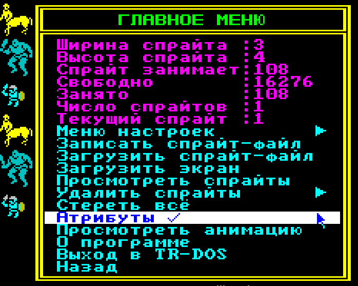 М.б. не "длина" спрайта, а всё-таки "ширина"? И кол-во букв с "высота" будет одинаковое - меню ровней будет. Длина спрайта - это его длина в байтах. Стереть всЁ. Буква Ё есть в русском алфавите. Объём спрайта, а не объем (кого объем? объемся спрайта?). Вот это как раз и есть: длина.. Чтобы не путать людей я бы написал "Спрайт занимает", хорошо коррелирует со "Свободно". Спрайт-файл пишется через дефис. Так что, Лас прав: с удобным интерфейсом вы пока погорячились.