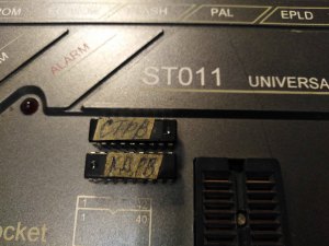 Выпаял и считал две К556РТ12 (D13, D21), которые идут на видеовыход. Вроде больше программируемых микросхем тут нет.