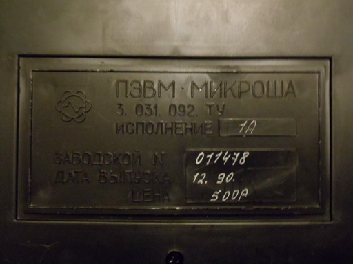 пэвм "микроша", 1990 года выпуска. работоспособность не проверялась, проверить нет абсолютно никакой возможности. блока питания родного в комплекте нет. на крепежном винте посередине заводская пломба, поэтому фотографии кишок нет. внешнее состояние хорошее, впрочем, на фотках видно.