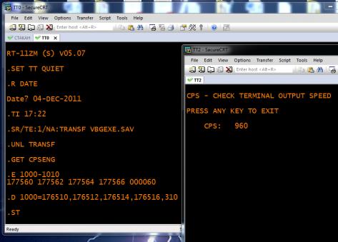 При абстрактной эмуляции - скорость в порту слегка плавает и всегда немного отличается от абсолютно точного значения.Код:.GET CPSENG .E 1000-1010 177560 177562 177564 177566 000060 .ST CPS - CHECK TERMINAL OUTPUT SPEED PRESS ANY KEY TO EXIT CPS: 5741 PROGRAM COMPLETED .