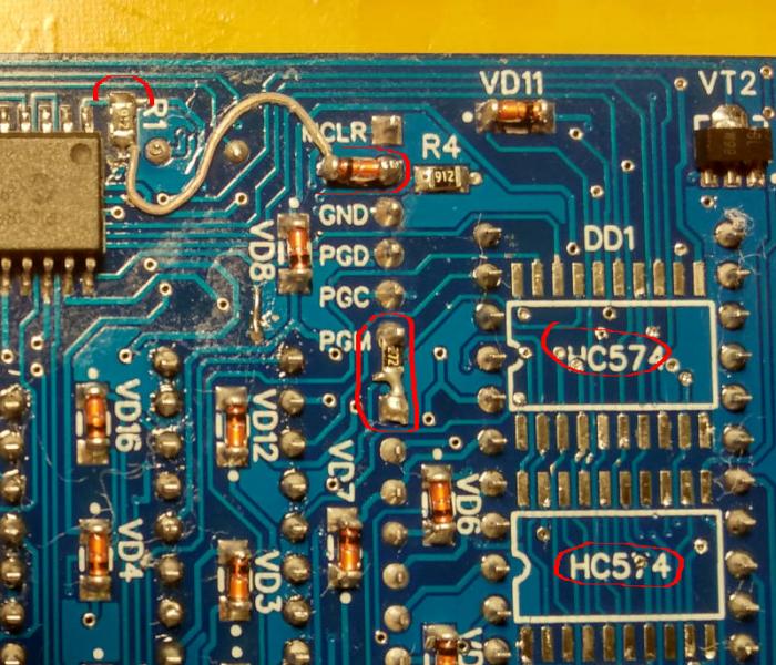 поэтому для исключения побочных эффектов сняты оба HCT574, так что PGD и PGC идут на ICSP разъем и никуда более.