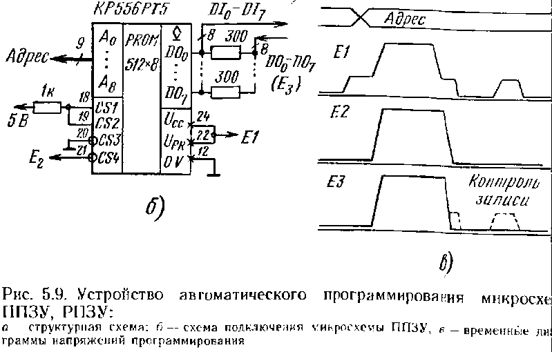 Вот описание последовательности действий при программировании микросхемы К556РТ5.