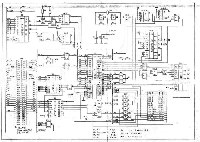 Что то- не хочет работать=(. Подскажите пожалуйста, по поводу подключения самого контроллера. Может я что то не правильно подключил? Я так понял все сигналы с разъема d0-d7, a0-a15, RESET, IORQ, MREQ, RD,WR,M1 можно подключить прямо на процессор. BETA на выбор TRDOS. C небольшой доаботкой NMI -к плюсу через резистор(разорвать от BUSQR), или что то должно быть проинвертировано. На разъеме BDI нарисованы все сигналы не инверсные, на схеме процессора все инверсные, из чего заключаю что на схеме разъема BDI -просто везде не поставили инверсные черточки. Интересуют сигналы RD и IORQ. RD идет по схеме напрямую в контроллере на 27256, В ленинграде1 туда идет не RD а RDROM. Что заводить на контроллер? ( хотя пробовал и то и то, результат одинаковый =(. ) И по поводу IORQ - нужно ли делать доработку как в контроллере (кажется для ленинграда2, схемы очень похожи, приаттачу) IORQOUT, То есть вход на BDI и выход этого сигнала обратно на процессор? Спасибо за любую информацию! Она наводит на дополнительные размышления!