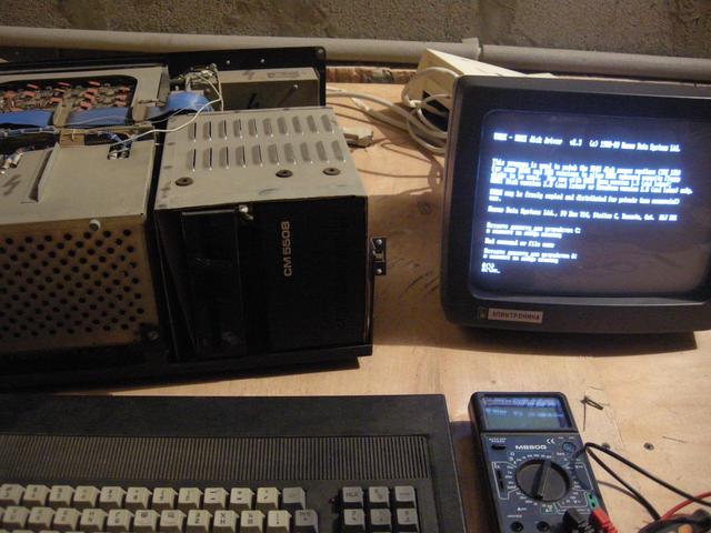 В комплекте с компьютером одна дискета, после проверки памяти и корректировки даты и времени просит вставить дискету для устройства С и нажать любую клавишу. Считывает дискету, следующий запрос на дискету для устройства А. Дискету, считанную ранее, не принимает, поэтому проверка была остановлена на этом пункте (все отображено на фотографиях)