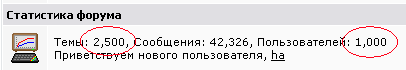 Ровно 1000 пользователей и 2500 тем![]()