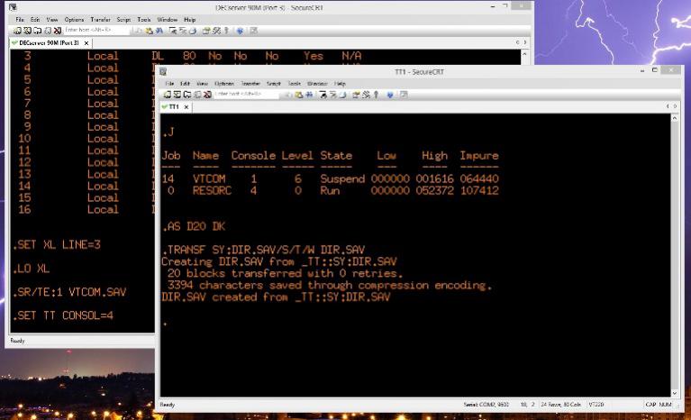 В моей конфигурации многотерминальной нижнюю память выжирает почти всю, но основные команды (включая DIR, редактор KEX, MACRO, LINK и тому подобное) можно использовать параллельно