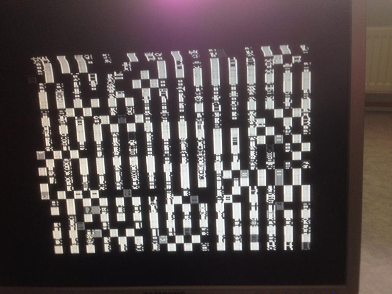 Собрался таки эту плату, подключил питание, но не тут-то было. Комп не запускается, точнее при включении белый экран, на кнопку сброс реагирует, но белый экран сменяется на квадратики. Почти каждое нажатие на сброс меняет изображение, т.е. квадратики на белый экран, на вертикальные полосы или квадратики по разному рассыпаются на экране. Подскажите пожалуйста, как найти причину.