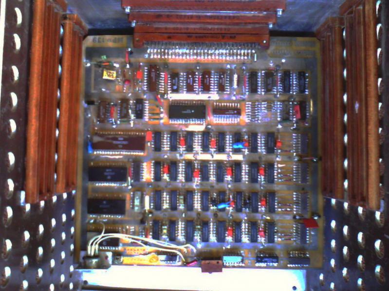 Довольно дорого приобрел "Микро-80". Выполнен "прошивкой" на двух платах в корзине. Внизу корзины БП. Клавиатура на огромных мех. кнопках(требует смазки). Состояние на 3 с плюсом. Оказался нерабочий (весь экран забит символами из знакогенератора). Быстро выяснилось самое главное - компьютер полностью не совместим с моей женой...