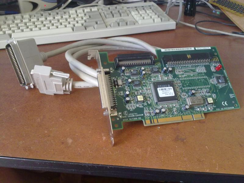 Собственно сабж. CD-чейнджер на 7 дисков. SCSI-интерфейс, line out (2 тюльпана). В комплекте для полного счастья SCSI-контроллер adaptec AHA-2940UW и интерфейсный кабель SCSI.