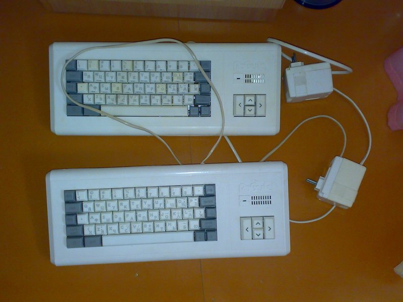 2 ком-внешнее состояние похуже. Кнопки желтоваты. Есть незначительный скол кусочка со стороны клавиатуры. Аккуратно подклеен почти не видно. При включении светодиод горит звук при нажатии НЕ ИЗДАЕТ! Скорее всего неисправен. Блок питания подвергался починке. На плате копьютера следов пайки не видно все микросхемы на месте.