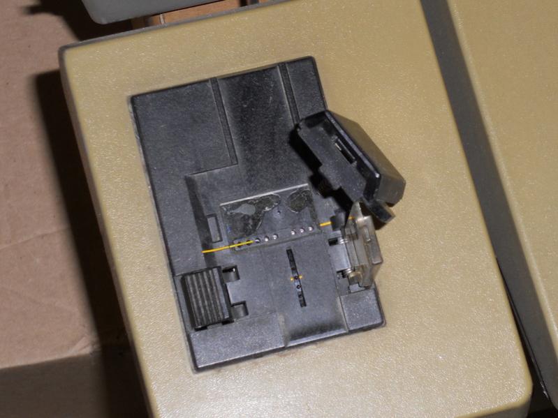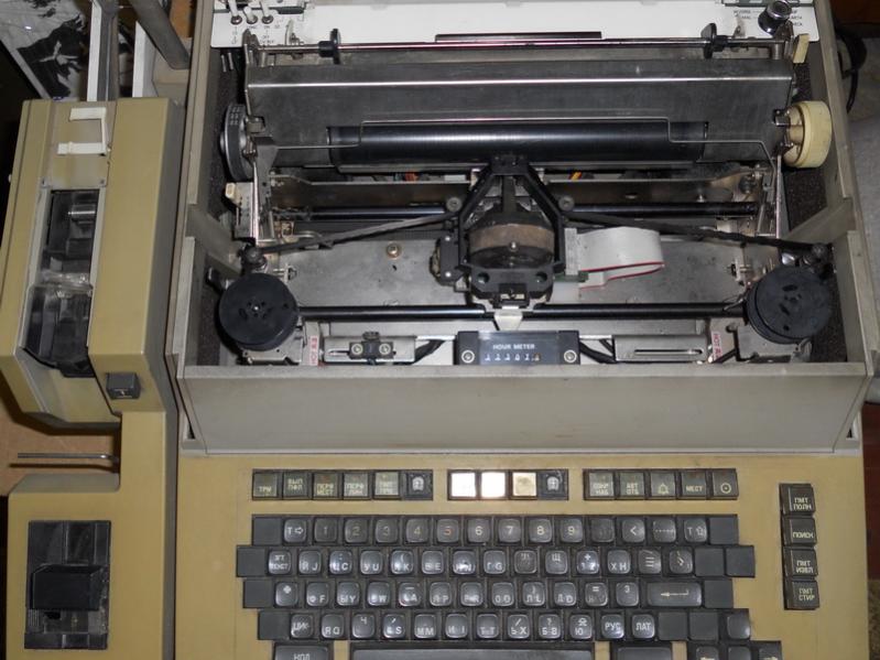 Аппарат оказался в средне-убитом состоянии – нет двух клавиш, разбит плекс в крышке, сломана петелька осветителя в перфосчитывателе (но держится на магните), отсутствует шильдик с «МТ100», ну и по мелочам немного. Сильно пожелтел. Судя по перфоратору, машина пятибитная. Не включал, сетевой хвост тоже отрезан, но внутренности все на месте