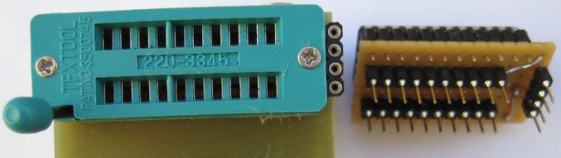 Я сделал такой адаптер. Вставляешь в ZIF-20. Подключаешь 4 провода. Получилось тестер для 24ног микросхем. Когда тестирую другие микросхемы, убираю этот адаптер.