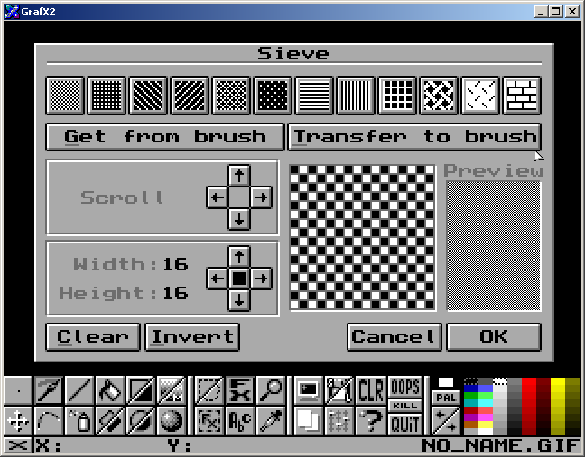 Маска - какой оптимальный размер? 16х16 вроде достаточно? А как ее редактировать (создавать)? Рисовать на основном экране и копипастить в основное окно? Или откр. спец окно только с маской? (наверное так лучше, но чуть геморнее делать)