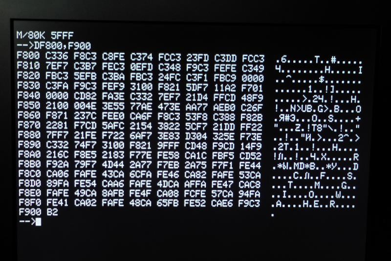 После пары вечеров шаманства запустил на своей Микро-80 Монитор, совместимый с Монитором Радио-86РК (см.Радио N11 1989 г.).
