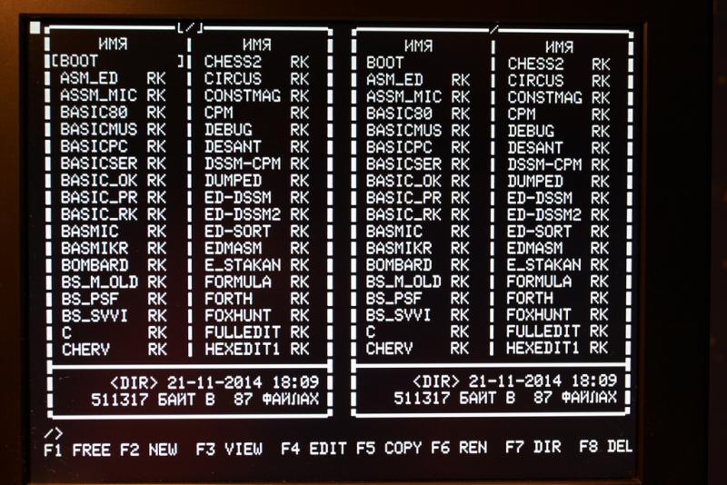 - M80_RK86-modified.bin - подкорректированый мною (кроме исправления ошибки изменена высота экрана на 24 строки и изменены адреса дополнительной ВВ55 так, что ее выводы A0,A1 можно подключать к шине адреса без инверторов, см.схему в Радио N11 89г.)