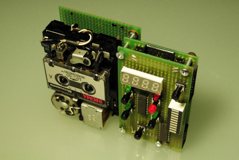 Потихоньку реализовываю свою давнюю идею - интегрированый накопитель на магнитной ленте для компьютера Микро-80. После некоторых раздумий, решил остановиться на варианте с микрокассетой. С одной стороны -теплый ламповый звукистинно механический девайс, винтажный носитель информации, с другой - компактные размеры.