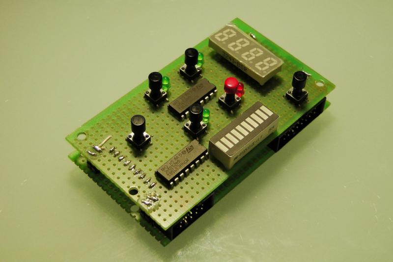 Логику управления и интерфейс с Микро-80 реализован на Atmegа8, это мой первый AVRовский проект. На данный момент реализовано управление ЛПМ в автономном режиме, сейчас работаю над интеграцией с компьютером - контроллер будет цепляться на шины данных и адресов и синхронизироваться сигналом готовности ГТ.