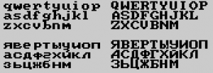 Прошивка содержит измененный шрифт латинского и кириллического алфавита. Переключение языков ввода на кириллический и латинский производится командами POKE 23607,56 и POKE 23607,60 соответственно. Раскладка кириллической клавиатуры - ЯВЕРТЫ. Нажатие клавиш сопровождается щелчками в громкоговорителе.