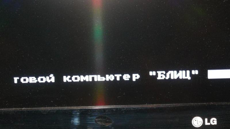 Изображение не по середине, а как-то ушло в лево, а справа полоса. Внизу надпись: то-ли бытовой то-ли игровой компьютер Блиц. Попробовал нажимать разные кнопки - работаю и что-то пишет. Нажал ВВод и компьютер матюкнулся что-то. Смущают два момента: почему черно-белый экран и почему изображение ушло влево?