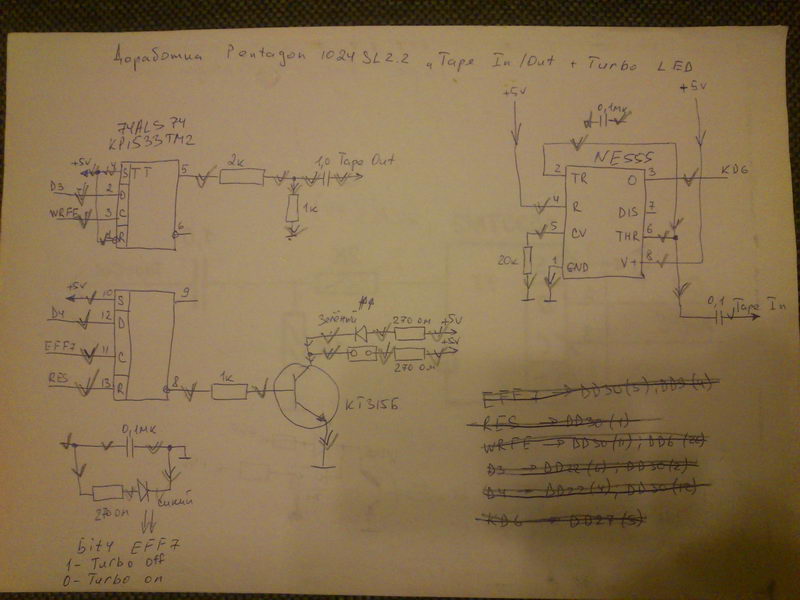 Вот, что просили. Качество не очень, но надеюсь разберетесь. По поводу магнитофонного входа не уверен, что все правильно, я его не проверял, а взял так-же где-то на форуме, с кучей переделок, попозже поищу если найду ссылку дам. В индикации турбы транзистор можете не ставить если ток через светодиод до 8 мА (ставьте напрямую на ногу микрухи с токоограничивающим резюком), у меня два светодиода один на плате, а второй в корпусе, перестраховался. Галочками просто помечал цепи которые уже запаял.
