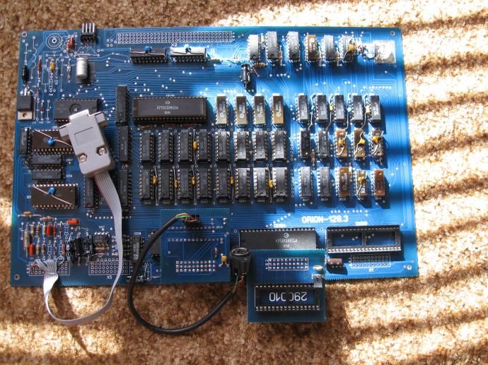 Орион 128 (собранна только материнская плата без контроллера FDD)цена 380 грн. бонус платка доп озу и платка для подключения процессора z80. Контроллер клавиатуры и ром диск припаяны к платке штырьками. Озу выскакивало пришлось впаять их в панельки, припаяны крайние ножки. Все тесты проходит.
