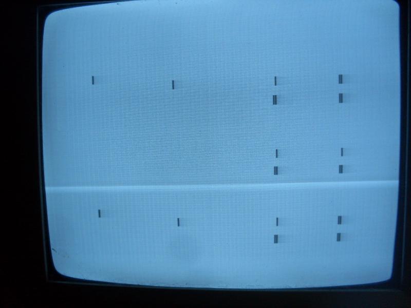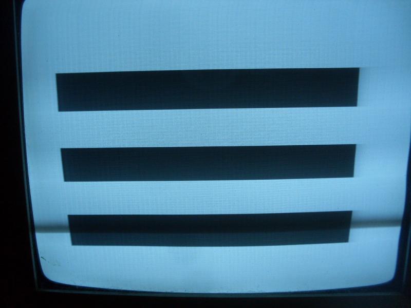 вот что кажет без проца и пзу, каждый раз по разному чаще всего 3 черные полосы.