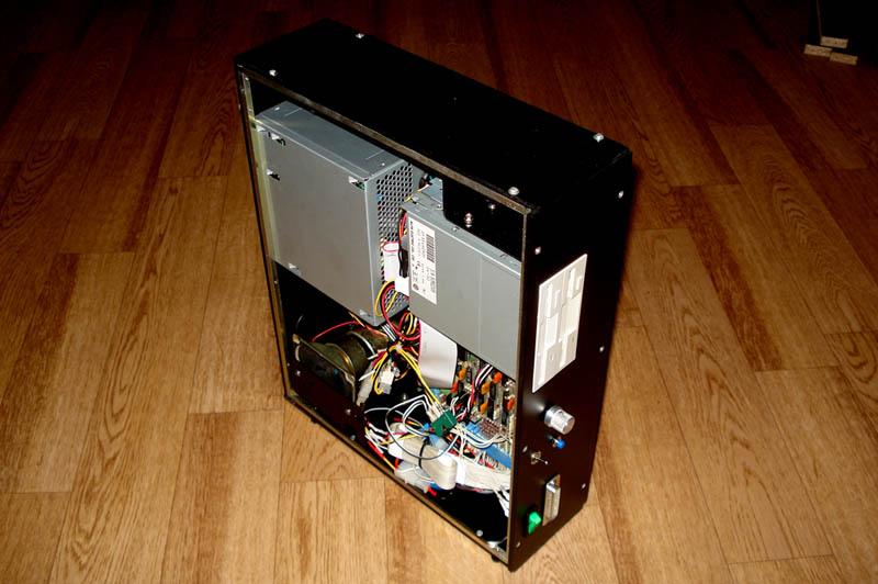 Кулер включается принудительно кнопкой Y на лицевой панели. Без кулера БП дико греется, хотя к нему даже дисковод не подцеплен. Дисковод я питал от отдельного БП, при подключенном дисководе CP/M больше не выдает ошибку. TR-DOS 5.3, игрушки грузит, но дисковод иногда начинает головкой елозить, т.е. не с первого раза считывает дорожку, но потом всё равно считывает, ошибок Retry Abort Ignore не выдаёт. Тот же дисковод в связке с +2B работает лучше.