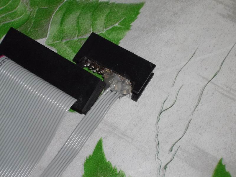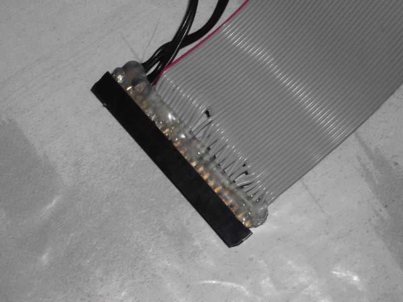 Я шлейф делал, пользуясь таблицей. Ищешь в инете распиновку интерфейса ST-506 и вперёд по таблице распаивать.. Эта таблица в начале темы. Если разъём 40 выводов, наверно можно использовать от IDE винта. Там правда косяк будет с шагом, но думаю влезит. У меня 48 пин, так я взял IDC50, откусил лишнее и спаял шлейф. Влазит туговато, но работает. Вид у моего шлейфа не очень.. Я не обжимал, я паял. Потом залил пайку термоклеем, чтоб не поотваливались проводки.