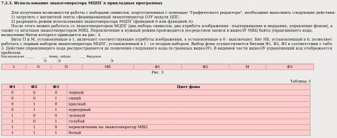 В руководстве к МЦПГ на странице 19 приведён формат управляющего кода ВГ75. Если предположить, что ВГ75 в модуле получает тот же код, что и бортовая, то наборы переключает бит 4, он соответствует выводу RVV. При этом руководство хранит в тайне формат этих наборов, и постоянно переводит стрелки на процедуры в ПЗУ и графический редактор.