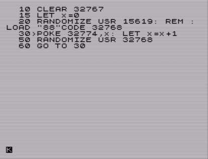 10 RANDOMIZE USR 15619: REM: LOAD "EEE" CODE 32768