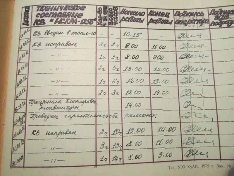 и еще - журнал эксплуатации КВ "Искра-1256"=)