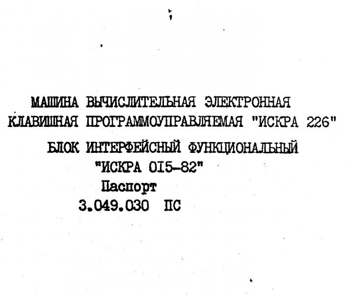Блок интерфейсный функциональный "ИСКРА 015-82" Паспорт