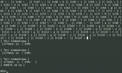 (! Важно) Образ дискеты загружается только в эмуляторе ДВК - Patrona, но данные читаются везде конечно! )Код:PROGRAM SHOWKEYS; VAR INKEY ORIGIN 177560B: INTEGER; KEY ORIGIN 177562B: INTEGER; I: INTEGER; /* SHKEYS v0.1a */ FUNCTION KEYPRESS: BOOLEAN; BEGIN KEYPRESS:=FALSE; INKEY:=0; IF(INKEY AND 128)<>0 THEN KEYPRESS:=TRUE; END; BEGIN I:=0;WRITELN; WRITELN('[ Номер \ Символ ]'); FOR I:=32 TO 127 DO WRITE('[ I=',I:2,' \ ',CHR(I),' ]'); REPEAT WRITELN; WRITELN('[',CHR(14),' tEST KLAWIATURY ',CHR(15),']'); REPEAT UNTIL KEYPRESS; WRITELN('[ 177562=',KEY:3,'. \ SYM=',CHR(KEY):3,' ]'); IF KEY=3 THEN BEGIN WRITELN(CHR(15),'[ SHKEYS v0.1a ]'); /*$C EMT ^O350 */ END; UNTIL 0>0; END.