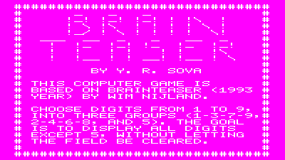 Эта компьютерная игра основана на «BrainTeaser» от Wim Nijland. Выбирайте доступные цифры от «1» до «9», разделяющиеся по методу реагирования на три группы («1-3-7-9», «2-4-6-8» и «5»). Цель — отобразить все цифры, кроме «5». Только следите, чтобы поле полностью не очистилось.
