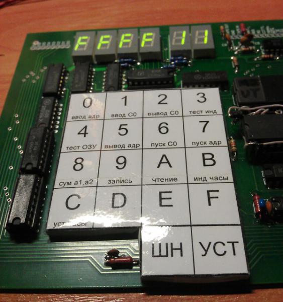 Здравствуйте. Я тоже заинтересовался проектом ЮТ-88 , который пытался спаять много лет назад. При сборке придерживаюсь инструкции. С блоком индикации прошло все гладко - без пзу на индикаторах 8888 88. Впаял к155ре3 на индикаторах FFFF FF. Клавиатура не заработала. Соединил вывод 11 DD21 на +5,вывод 12 DD16 DD17 к155рп1 на землю. На кнопки не реагирует...