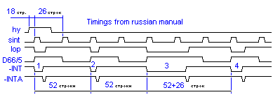D66/5 формируется 1 период за 52 строки. Посему действительно SINT генерируется раз в 26 строк.