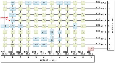 На рисунке матрицы с кнопками, которую я использовал в качестве базы, подключение кнопки "СТОП" не соответствует указанному в паспорте, у себя я это изменил - подключение стало логичным и эта кнопка выполняет функцию сброса компьютера.