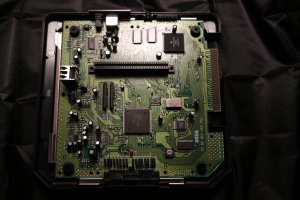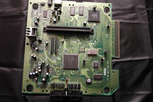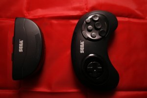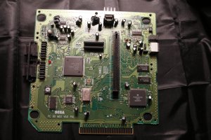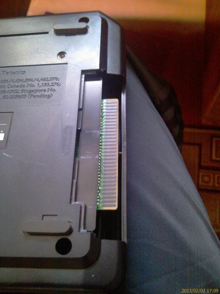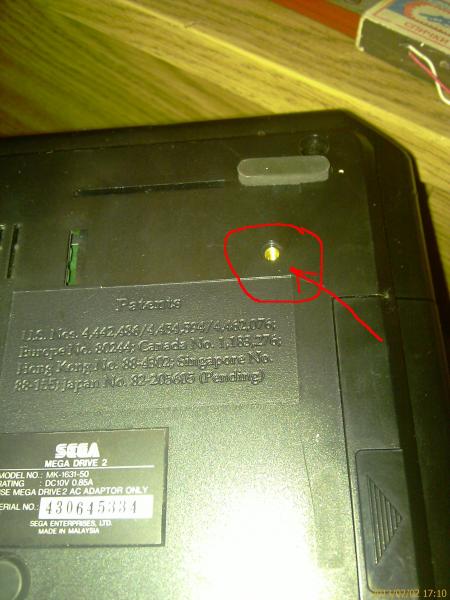 Вот там, куда стрелочка кажет, на оригиналах медяха, на китае - пластик. Так же, если снять крышку слота расширения, то на сам разъем одет красный пластиковый чехольчик, на китайцах его отродясь не встречал, впрочем его и на оригинале потерять можно. Но у меня он есть и на первом мегадрайве и на втором. Заморачивался как-то выискивал себе оригиналы SMD на ибее.